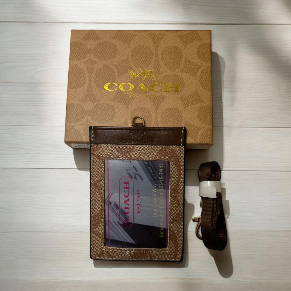 حامل بطاقات العمل (كارد هولدر ) مع سير من القماش من ماركة كوتش المميزة تمتع بالأناقة في حمل بطاقاتك